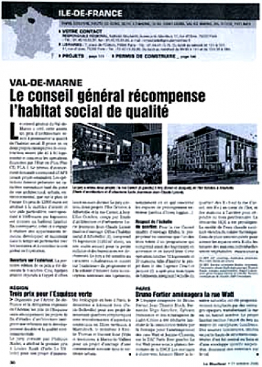 Projet : "Cette opération totalise 72 logements et 20 maisons. Afin d'insérer le projet dans le site, l'agence Cenci et Jacquot a opté pour trois types de bâtiments intégrant l'échelle du quartier : des R+3 sur la rue Carnot, des R+2 au coeur de l'îlot, et des maisons à l'arrière pour répondre au tissu pavillonaire. La démarche HQE a été privilégiée. La moitié de l'eau chaude sanitaire viendra du solaire thermique. L'eau de pluie sera récupérée poour arroser les espaces verts. Enfin, les toitures des maisons individuelles seront végétalisées." Ivry-sur-Seine.